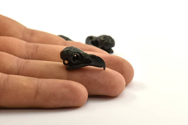 Black Tiny Bird Skull, 1 Oxidized Brass Black Bird Skull Pendants (24x11.5x9.5mm) N0489 S620
