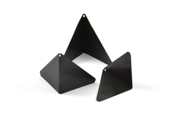 Black Tiny Kite Charm, 2 Oxidized Brass Black Geometric Triangles (31mm) U003 S241