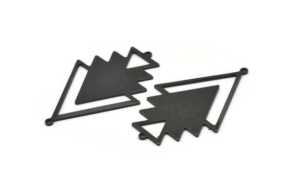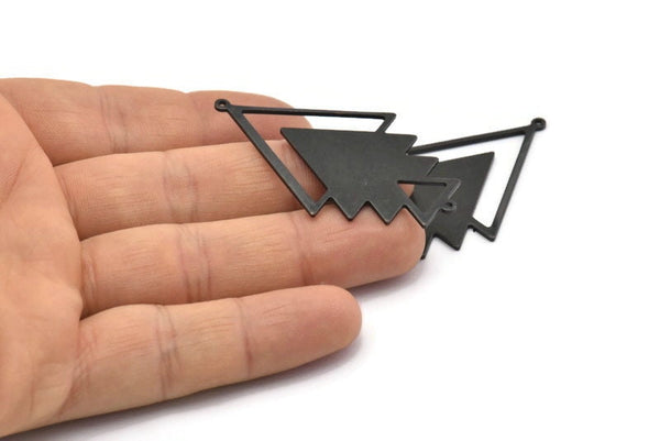 Black Triangle Charm, 2 Oxidized Black Brass Tree Charms With 2 Loops (51x33x1mm) M01231