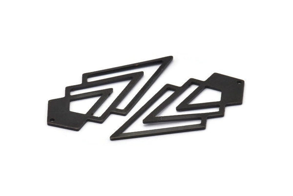 Black Triangle Charm, 4 Oxidized Black Brass Diamond Charms With 1 Hole (46x22x1mm) M01176 H1287