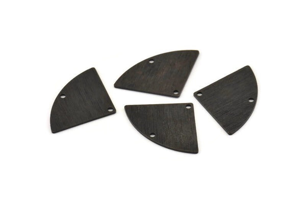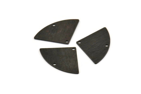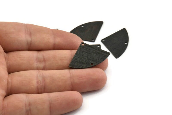 Black Triangle Charm, 6 Textured Oxidized Brass Fan Charms With 2 Holes, Stamping Blanks, Findings (30x19x0.80mm) M323
