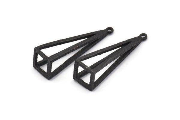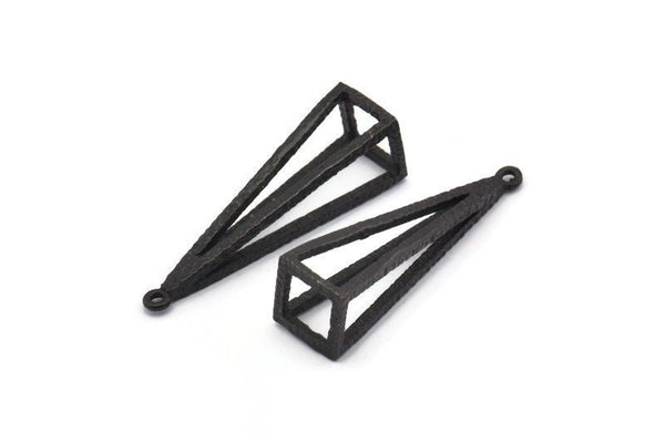 Black Triangle Prism, 2 Oxidized Black Brass Triangle Prism Pendants With 1 Loop (37x10mm) BS 1980