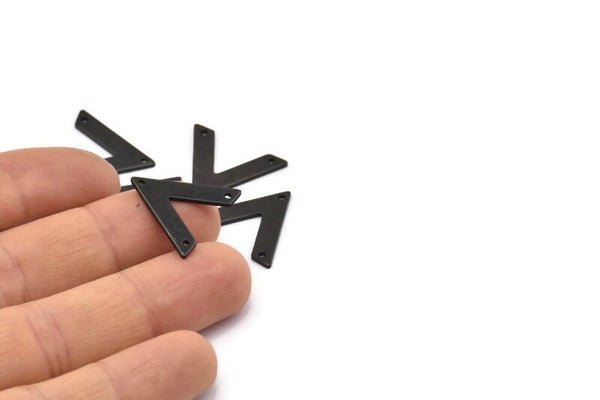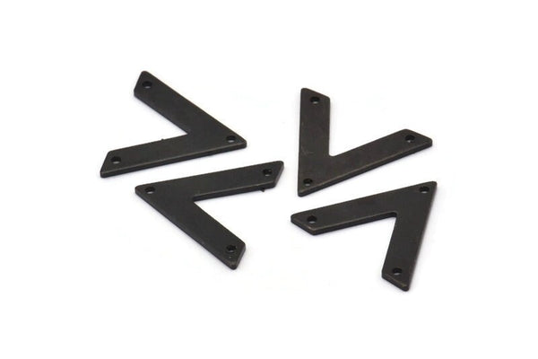 Oxidized Black Brass V Shaped Charms With 3 Holes
