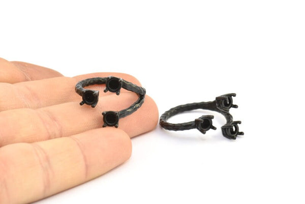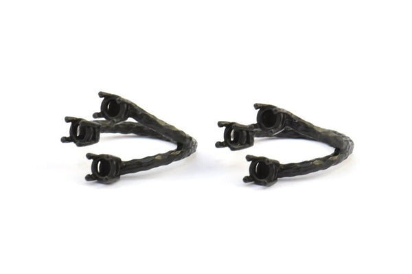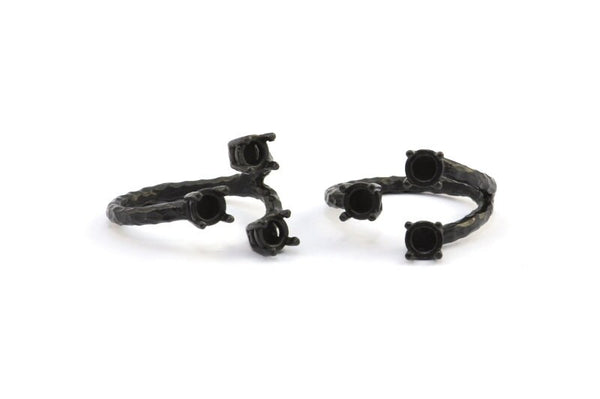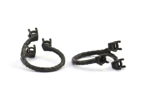 Claw Ring Setting - 2 Oxidized Brass Black 4 Claw Ring Blanks - Pad Size 4mm N0323