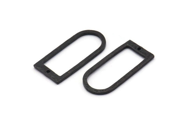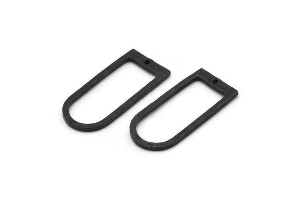 D Shape Charm, 4 Hammered Oxidized Black Brass D Shape Charms With 1 Hole (29x13x1.3mm) BS 1873