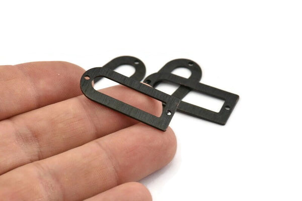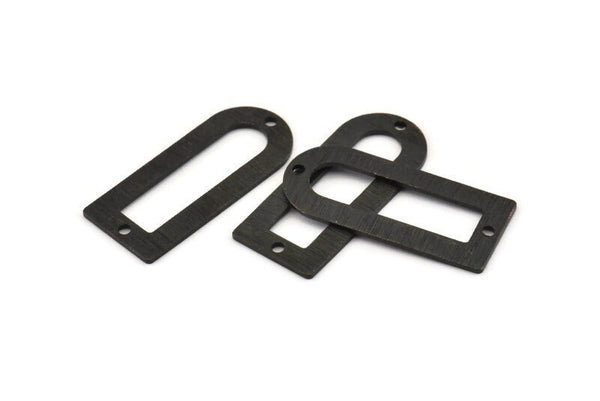Textured Oxidized Black Brass D Shape Connectors With 2 Holes