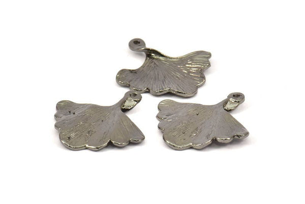 Ginkgo Leaf Pendant, 4 Black Plated Brass Leaf Charms (26x25mm) N0393