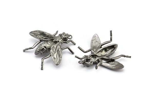 Huge Bug Pendant, 1 Black Plated Bug Fly Insect Charm Pendant (43x41mm) N0214 Q0665