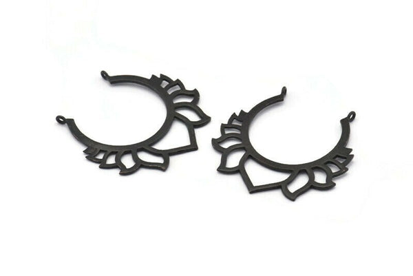 Oxidized Black Brass Hammered Lotus Flower Pendants With 2 Loops