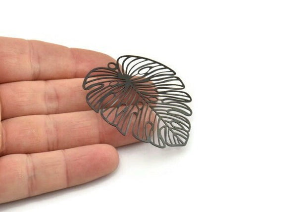 Oxidized Black Plated Brass Monstera Leaf Charms With 1 Loop