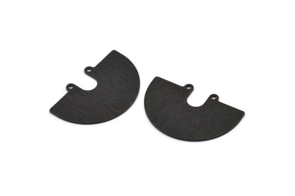 Semi Circle Charm, 4 Textured Oxidized Black Brass Semi Circle Charm Pendants With 2 Holes (33x22x0.80mm) D0739