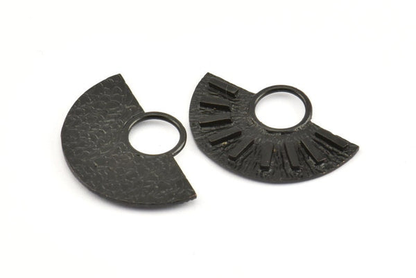 Semi Circle Pendant, 2 Oxidized Brass Black Semi Circle Pendants (28x19mm) A0741 S798