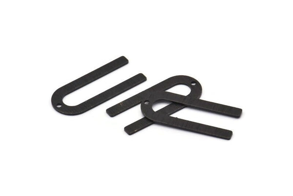 U Shaped Charm, 8 Textured Oxidized Black Brass U Shaped Charms With 1 Hole, Blanks (30x13x0.80mm) M168