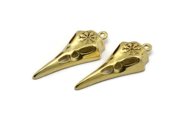 Raw Brass Snowflake Patterned Bird Skull Charms With 1 Loop