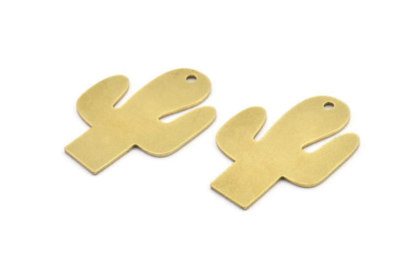 Brass Cactus Charm, 4 Raw Brass Cactus Charms With 1 Hole (33x24x1mm) A3066