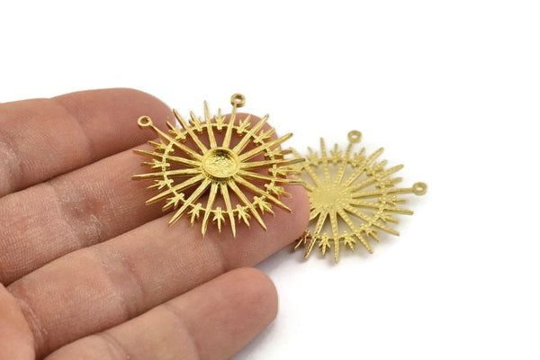 Brass Charm, 2 Raw Brass, Charm Pendant, Brass Pendant, Brass Charm With 1 Loop, Stone Setting - Pad Size 6mm (34x32mm) N1366