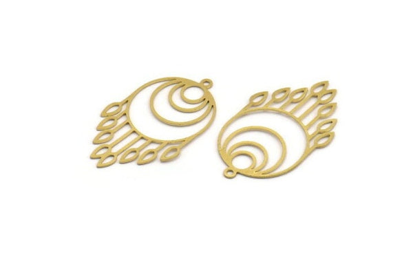 Raw Brass Drops And Crescent Moon Patterned Charms With 1 Loop