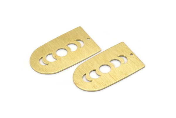 Textured Raw Brass Moon Phases D Shape Charms With 1 Hole