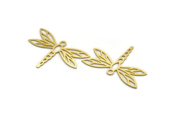 Brass Dragonfly Charm, 6 Raw Brass Dragonfly Shaped Charms With 1 Loop, Pendants, Findings (30x43x0.60mm) SMP0124