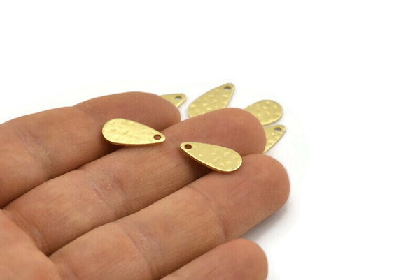 Brass Drop Charm, 50 Hammered Raw Brass Drop Charms With 1 Hole (15x8x0.80mm) M01476