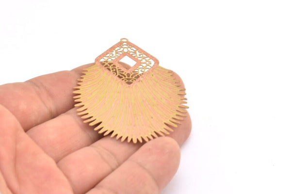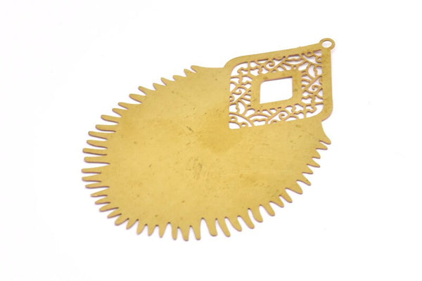 Brass Earring Charm ,4 Raw Brass Ethnic Motif Earring Charms With 1 Loop Pendants, Findings (65x42mm) E480