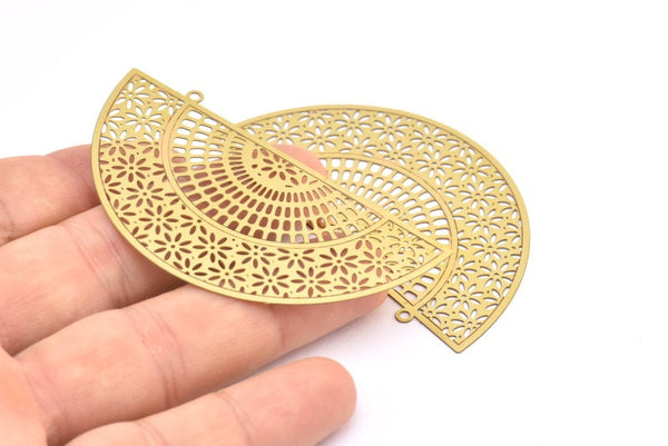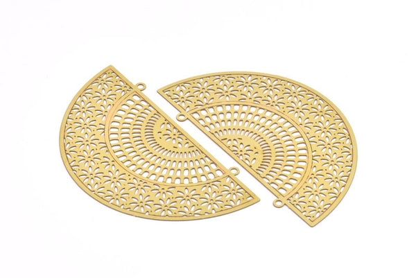 Raw Brass Ethnic Motif Earring Charms With 2 Loops Pendants