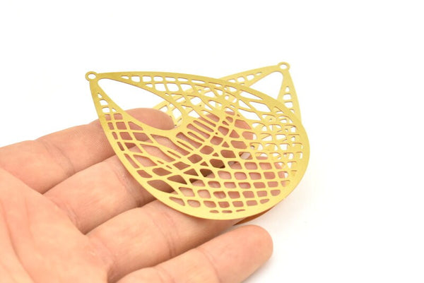 Brass Earring Charm ,4 Raw Brass Textured Drop Earring Charms With 1 Loop Pendants, Findings (72x53mm) E566