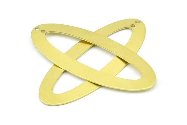 Brass Ellipse Charm, 4 Raw Brass Ellipse Shape Stamping Blank Charms With 2 Holes Earrings, Findings (59x24x0.70mm) B0250