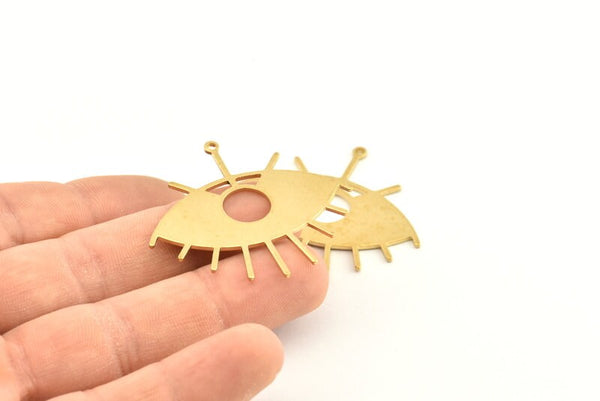 Brass Eye Charm, 6 Raw Brass Eye Charms With 1 Loop, Pendants, Earrings (43x39x1mm) D1176