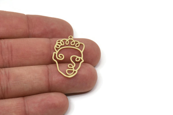 Brass Face Charm, Raw Brass Face Charm With 1 Loop, Face Shaped Jewelry, Findings (30x18.5x0.80mm) SMP2613