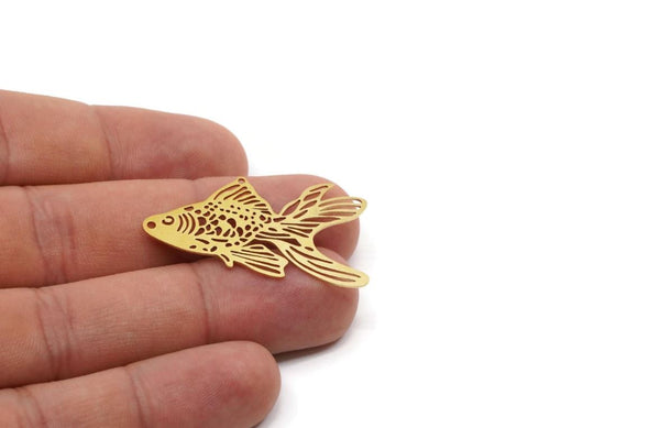 Brass Fish Charm, 2 Pieces Raw Brass Gold Fish Charms With 1 Loop, Findings (22x39x0.60mm) SMP2811