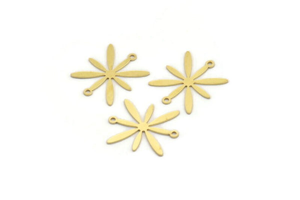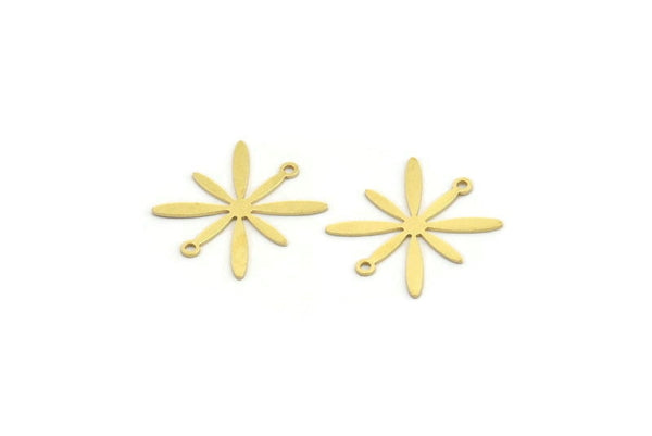 Brass Flower Charm, 12 Raw Brass Flower Charms With 2 Loops, Charm Pendants (22x19x0.60mm) A4244