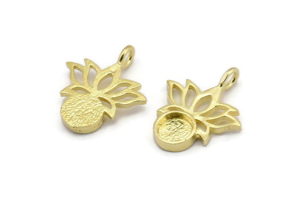 Brass Flower Charm, 4 Raw Brass Lotus Flower Charms With 1 Loop - Pad Size 6mm (21x17mm) N2074