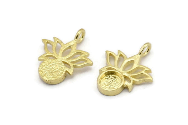 Raw Brass Lotus Flower Connectors With 2 Loops