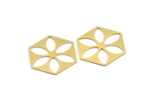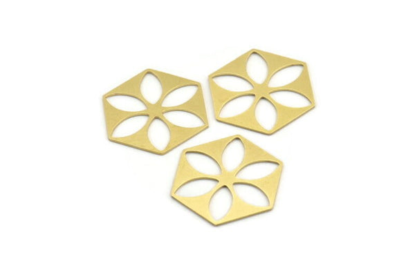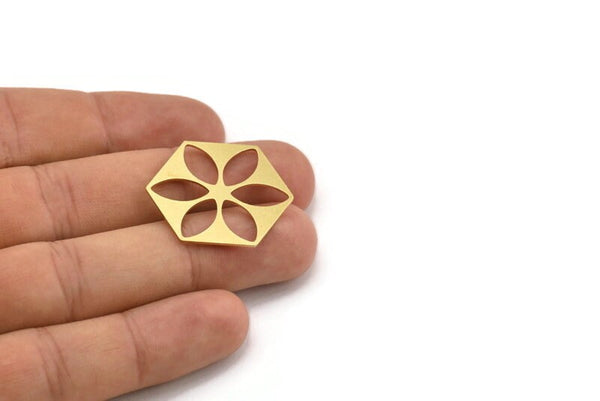 Brass Hexagon Charm, 8 Raw Brass Marquise Patterned Hexagon Shape Charms, Charm Pendants, Blank Findings (31x27x0.80mm) A4187