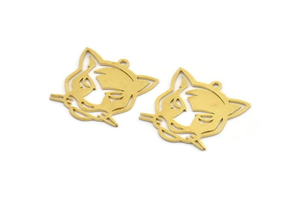 Brass Leopard Charm, 12 Raw Brass Leopard Charms With 1 Loop (21x20x0.60mm) A4380