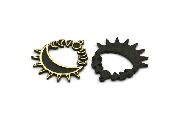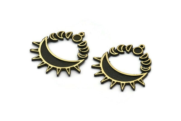 Brass Moon Charm, 2 Raw Brass Crescent Moon Charms With 1 Loop, Moon Phases Findings (32x30.5x1.5mm) N2221