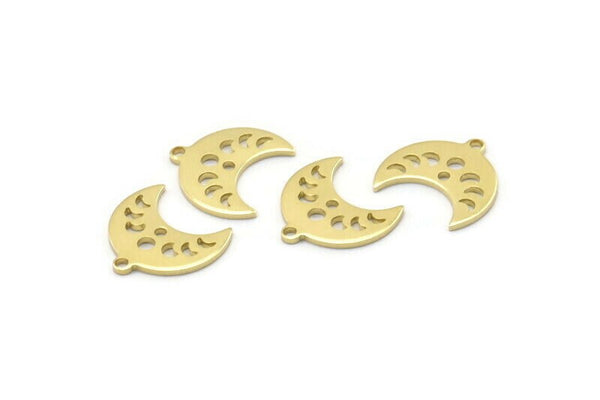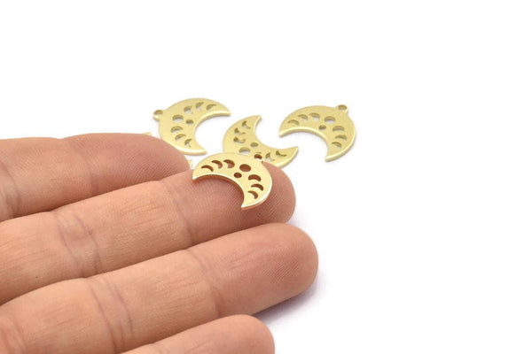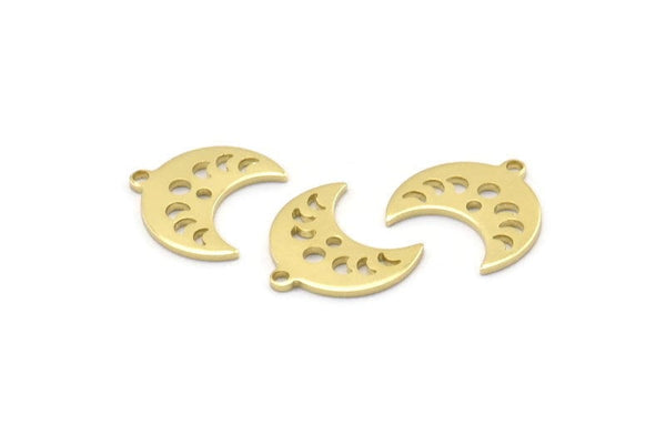 Brass Moon Charm, 24 Raw Brass Crescent Moon Phases Charms With 1 Loop And 1 Hole (15x9x1mm) M01993