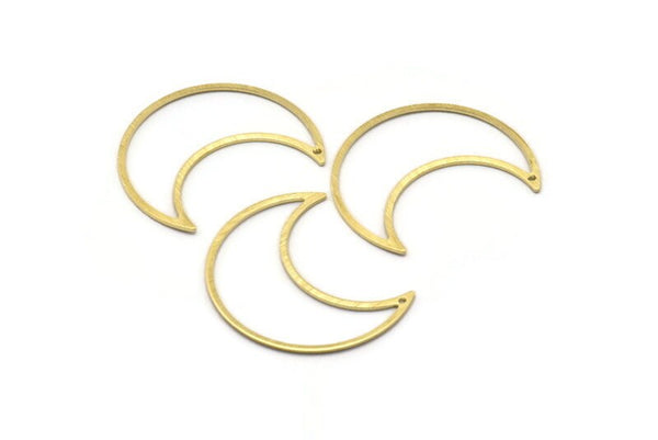 Brass Moon Charm, 4 Textured Raw Brass Moon Crescent Charms With 1 Hole (35x15x0.80mm) M03124