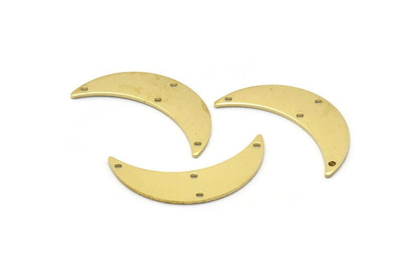 Brass Moon Charm, 6 Raw Brass Crescent Moon Charms With 4 Holes (28x8x0.80mm) M03069