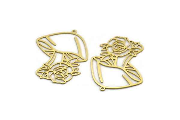 Brass Mushroom Charm, 6 Raw Brass Mushroom Charms With 1 Loop, Rose Charms, Pendants, Findings (40x31x0.60mm) SMP0065