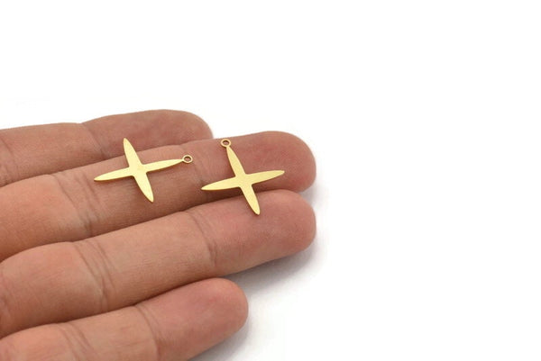 Brass Pole Star Charm, 24 Raw Brass, Brass Charms, Brass Pole Star Charms With 1 Loop (23x19.5x0.60mm) A3949