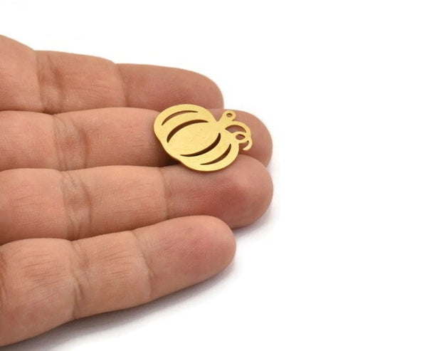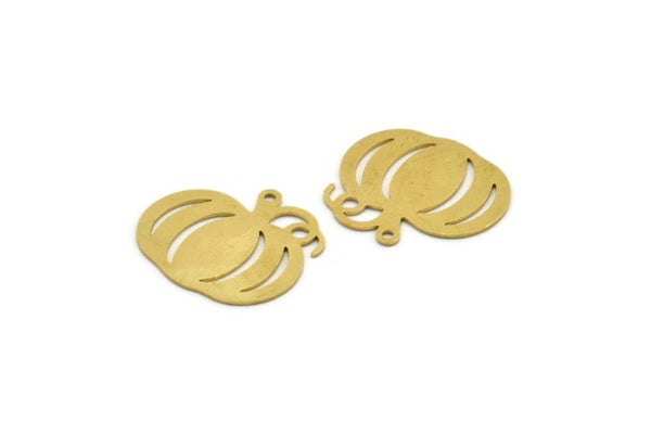 Brass Pumpkin Charm, 8 Raw Brass Pumpkin Charms With 1 Loop, Findings (22x20x0.60mm) A6615