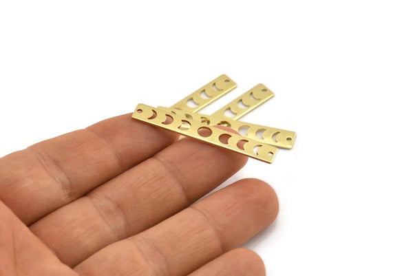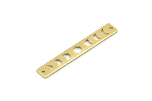 Brass Rectangle Charm, 12 Raw Brass Moon Phases Charms With 2 Holes, Stamping Blanks (40x6x0.80mm) M01491