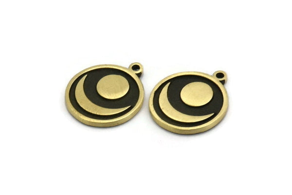 Brass Round Charm, 2 Raw Brass Round Charms With 1 Loop, Crescent Moon Findings (18x16x1.5mm) N2393