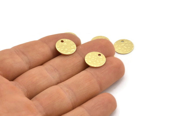 Brass Round Charm, 24 Hammered Raw Brass Round Charms With 1 Hole, Findings (12x0.80mm) M01519