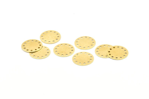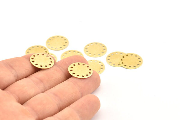 Brass Round Charm, 50 Raw Brass Round Charms With 12 Holes, Findings (16x0.50mm) A1296