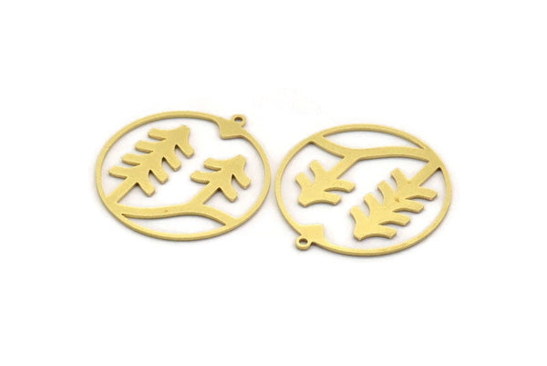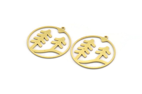 Raw Brass Landscape Patterned Round Shaped Charms With 1 Loop