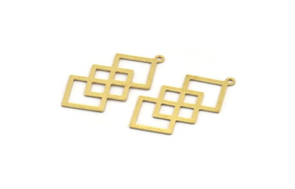 Raw Brass Square Charms With 1 Loop