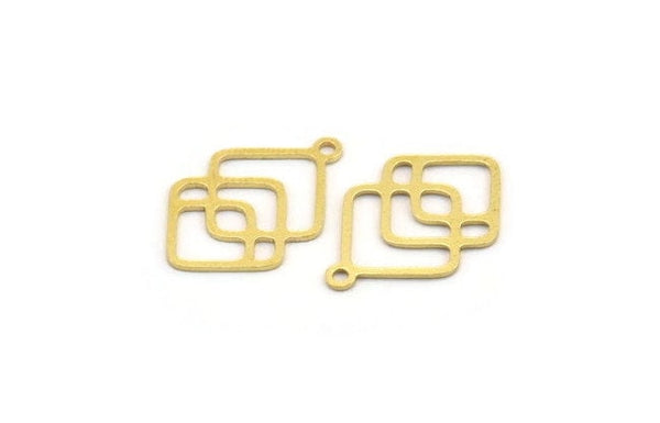 Brass Square Charm, 24 Raw Brass Square Charms With 1 Loop, Findings (20x13x0.60mm) A4634